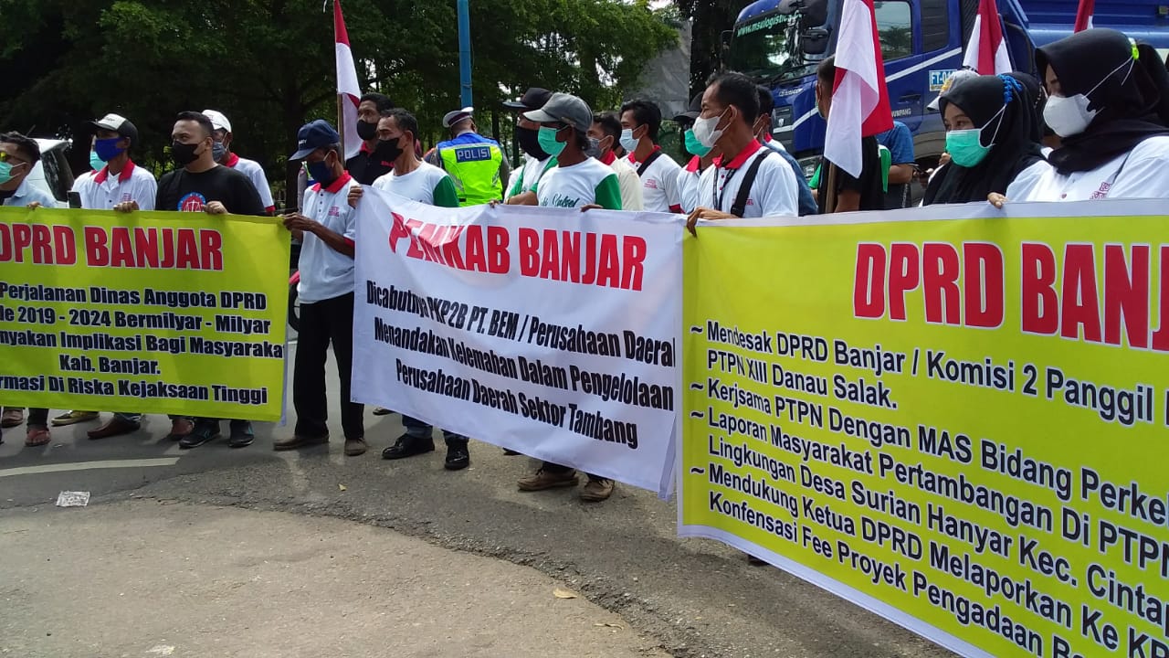 Protes tersebut disampaikan melalui aksi unjuk rasa di halaman gedung DPRD Kabupaten Banjar, Selasa (29/3/2022).