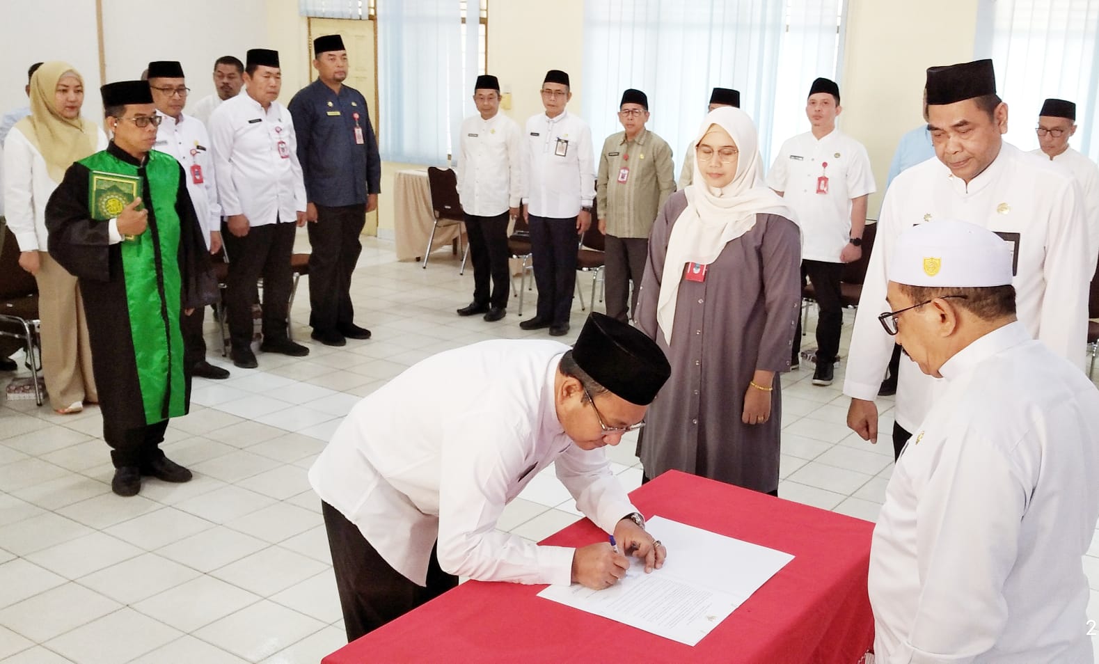 Link, Martapura – PNS merupakan abdi negara dan masyarakat yang siap ditempatkan dimana saja. Dalam pemerintahan ada Tour of Duty (TOD) dan Tour of Area (TOA). Demikian disebutkan mantan Sekda Banjar Mokhamad Hilman usai diambil sumpah janji jabatannya sebagai Staf Ahli Bidang Ekonomi, Pembangunan dan Keuangan Kabupaten Banjar.