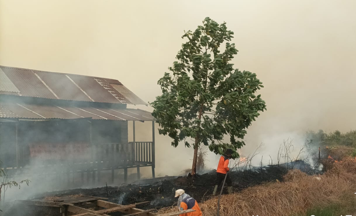 Karhutla yang terjadi di lokasi tersebut mendekati permukiman warga. Untungnya api bisa dikendalikan dengan luasan lahan yang terbakar sekitar 0,5 hektare. (zainuddin/BBAM)