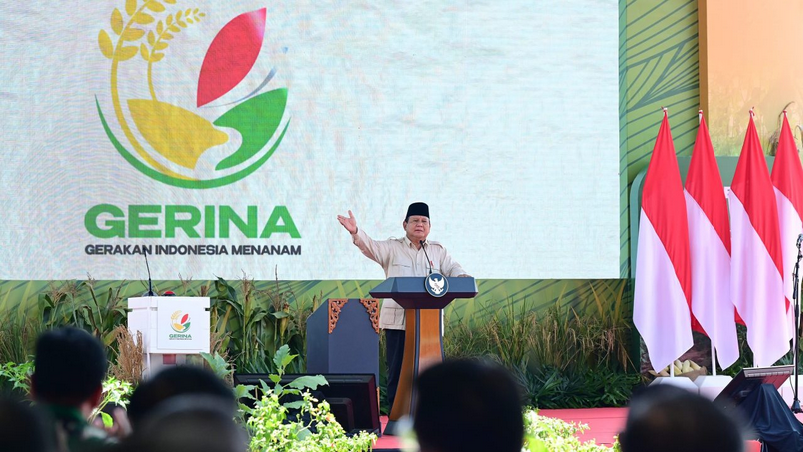 Presiden Prabowo Subianto menyampaikan kebanggaannya terhadap kemajuan sektor pertanian Indonesia yang kini tak hanya cukup untuk kebutuhan dalam negeri, tapi juga mulai diminati oleh negara lain. Kebanggaan ini disampaikan Presiden dalam sambutannya pada Peluncuran Program Gerakan Indonesia Menanam (Gerina) di Kabupaten Banyuasin, Provinsi Sumatra Selatan, pada Rabu, 23 April 2025.
