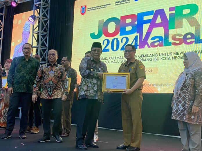 Penghargaan diberikan secara langsung kepada Direktur RSD Idaman Kota Banjarbaru, dr. Danny Indrawardhana dalam gelaran event Job Fair 2024 Kalsel yang berlangsung di Gedung Sultan Suriansyah, Banjarmasin, Selasa (25/6/2024).