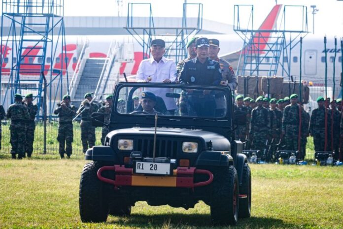 Link, Banjarbaru – Menteri Lingkungan Hidup (LH)/Badan Pengendalian Lingkungan Hidup, Hanif Faisol Nurofiq didampingi Gubernur Kalimantan Selatan, H. Muhidin memimpin Apel Kesiapsiagaan Penanganan Kebakaran Hutan dan Lahan (Karhutla) di Provinsi Kalsel Tahun 2025 bersama sejumlah relawan di Lapangan Pangkalan Udara (Lanud) Syamsudin Noor Banjarbaru, pada Kamis (7/8/2025) pagi.