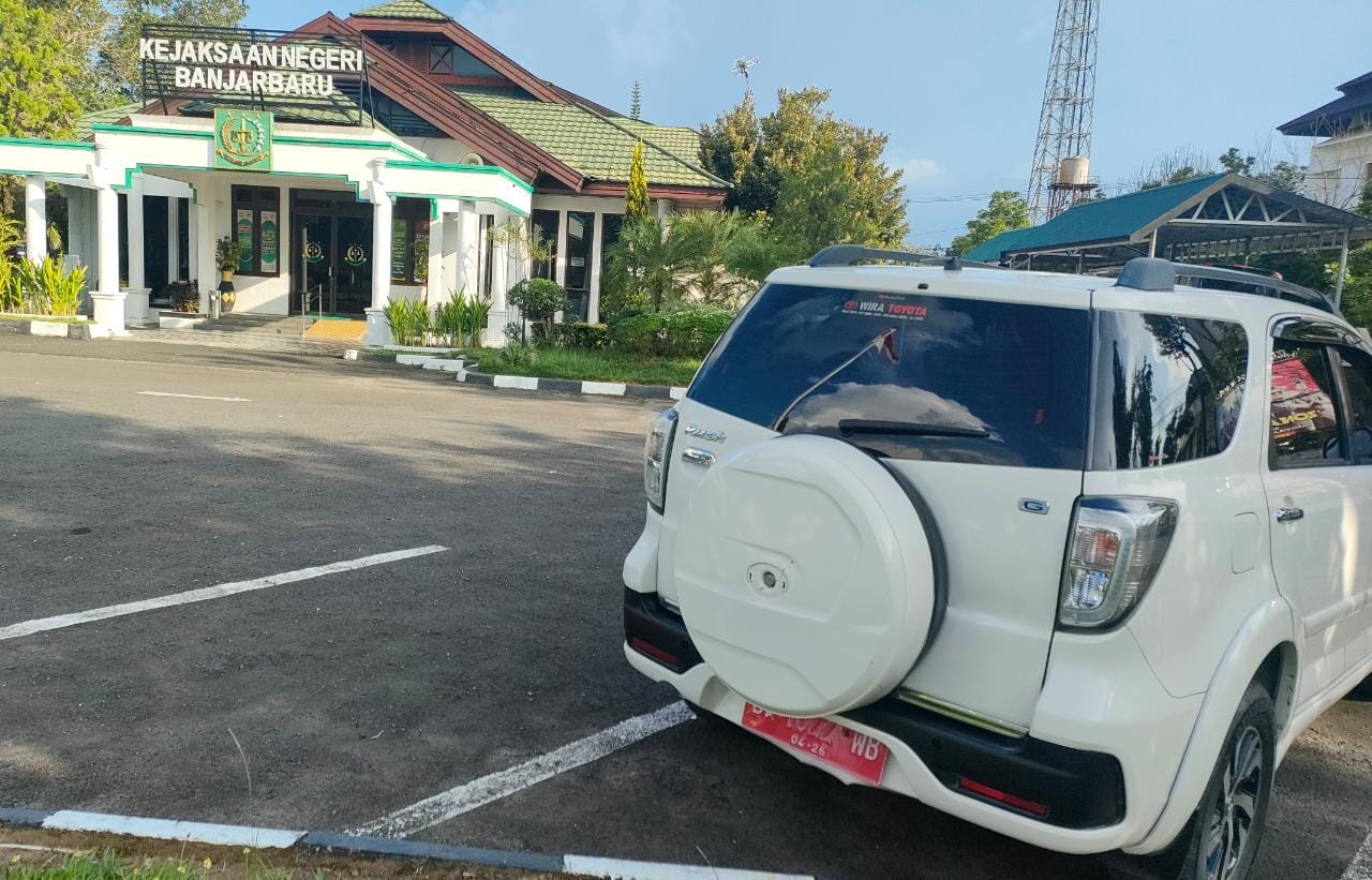 Link, Banjarbaru – Mobil dinas (mobdin) merk Toyota Rush berwarna putih kembali terlihat parkiran halaman kantor Kejaksaan Negri (Kejari) Banjarbaru.