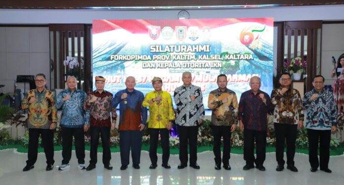 Link, Balikpapan- Gubernur Kalimantan Selatan, H. Muhidin bersama sang istri Hj. Fathul Jannah menghadiri Silaturahmi Forum Koordinasi Pimpinan Daerah (Forkopimda) Provinsi Kalimantan Timur, Kalimantan Selatan, Kalimantan Utara dan Kepala Otorita Ibu Kota Nusantara (OIKN) di Auditorium Rumah Jabatan Pangdam VI Mulawarman, Jalan Jenderal Sudirman, Kota Balikpapan pada Jum’at (11/7/2025) malam.