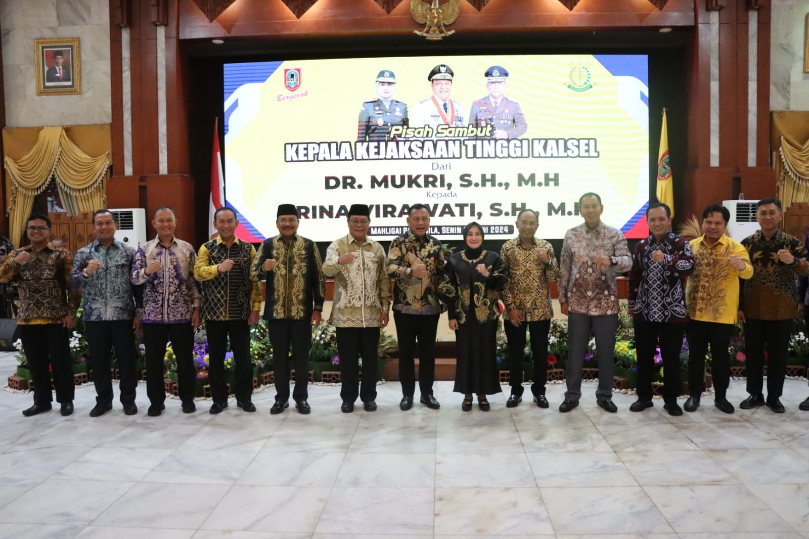 Link, Banjarmasin – Gubernur Kalsel H Sahbirin Noor atau Paman Birin, menghadiri pisah sambut Kepala Kejaksaan Tinggi (Kejati) Kalsel dari Dr Mukri SH MH kepada Rina Virawati SH MH di Mahligai Pancasila Banjarmasin, Senin malam (24/06/2024).