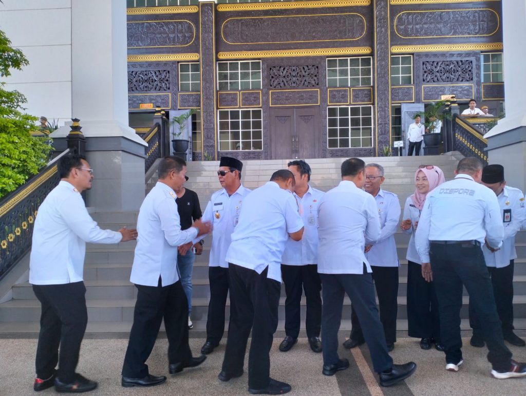 Paman Birin juga dengan senang hati melayani jabat tangan semua ASN dan karyawan-karyawati Pemprov Kalsel.