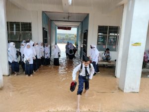 Link, Banjarbaru – Hujan deras yang menguyur Kota Banjarbaru dan sekitarnya sejak pukul 07.30 Wita membuat sejumlah kawasan terendam parah. Sebagian wilayah Kecamatan Cempaka dan Kecamatan Banjarbaru Selatan, Banjarbaru Utara hingga siang ini air masih dalam.
