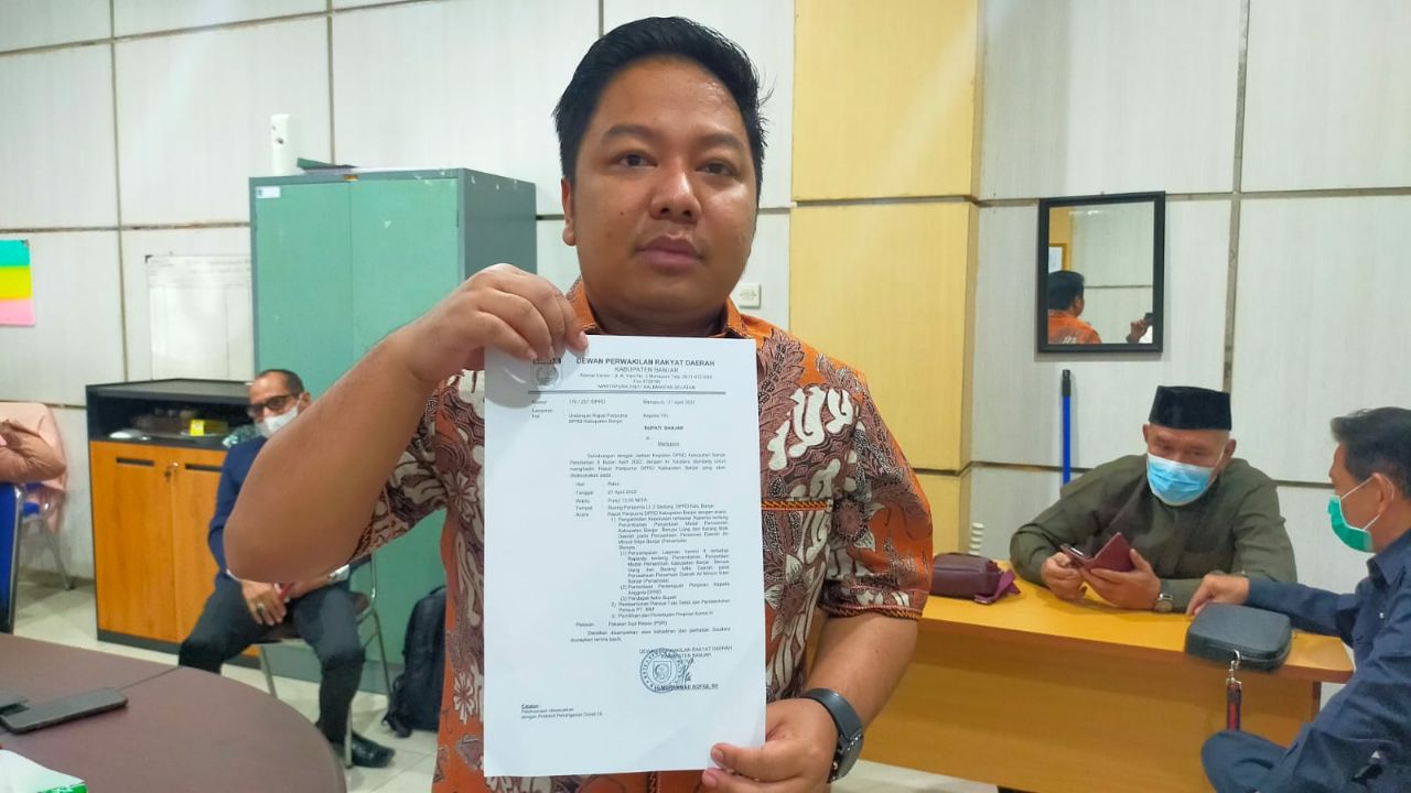 Link, Martapura – Entah ada apa dengan DPRD Kabupaten Banjar belakangan ini. Pastinya hari ini tanda tangan Ketua DPRD Kabupaten Banjar Muhammad Rofiqi diduga sengaja dipalsukan untuk merubah kegiatan yang sudah disusun dan disetujui Banmus, Rabu (27/4/2022).