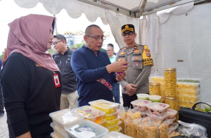 Link, Martapura – Pemerintah Kabupaten Banjar melalui Dinas Koperasi Usaha Mikro Perindustrian dan Perdagangan (DKUMPP) menggelar pasar murah dan Bazar UMKM produk unggulan daerah, di halaman Gedung Dekranasda Kabupaten Banjar, Jumat (22/11/2024) pagi.