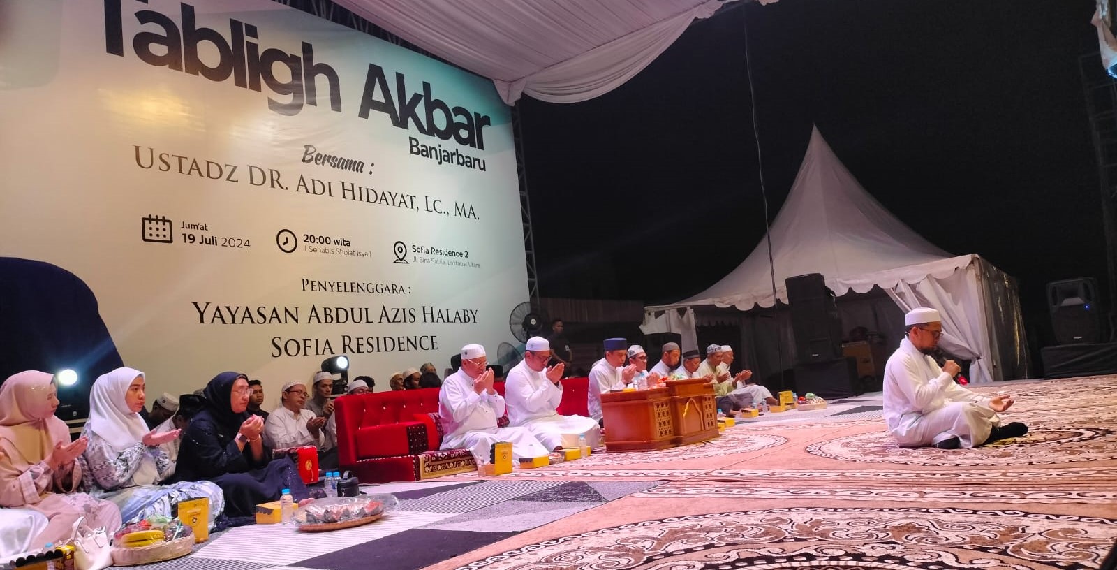 Arus jemaah yang ingin mengikuti Tablik Akbar bersama UAH di di Sofia Residence 2, Kecamatan Loktabat Utara, Kota Banjarbaru, tiada henti berdatangan dan berusaha untuk mencari posisi sedekat mungkin dengan panggung utama.
