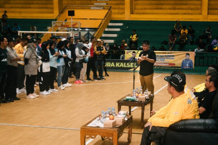 Link, Banjarmasin – Pekan Olahraga KORPRI Provinsi Kalsel Tahun 2024 di GOR Hasanuddin Banjarmasin dibuka Gubernur Kalimantan Selatan H Sahbirin Noor atau Paman Birin melalui Staf Ahli Bidang Ekonomi Agus Dyan Nur, pada Selasa (27/8) pagi.