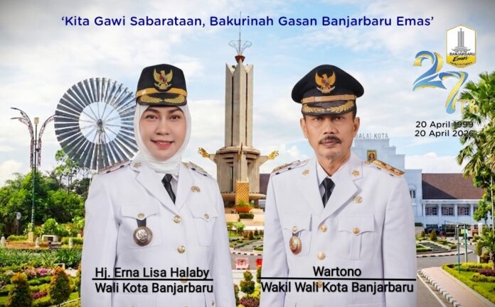 Diambil sumpah janjinya pada 21 Juni 2025 lalu, Hj Erna Lisa Halaby – Wartono sebagai Wali Kota/Wakil Wali Kota Banjarbaru periode 2025–2030 membawa harapan baru untuk masyarakat. Visinya, Banjarbaru EMAS (Elok, Maju, Adil, dan Sejahtera) lima tahun ke depan.