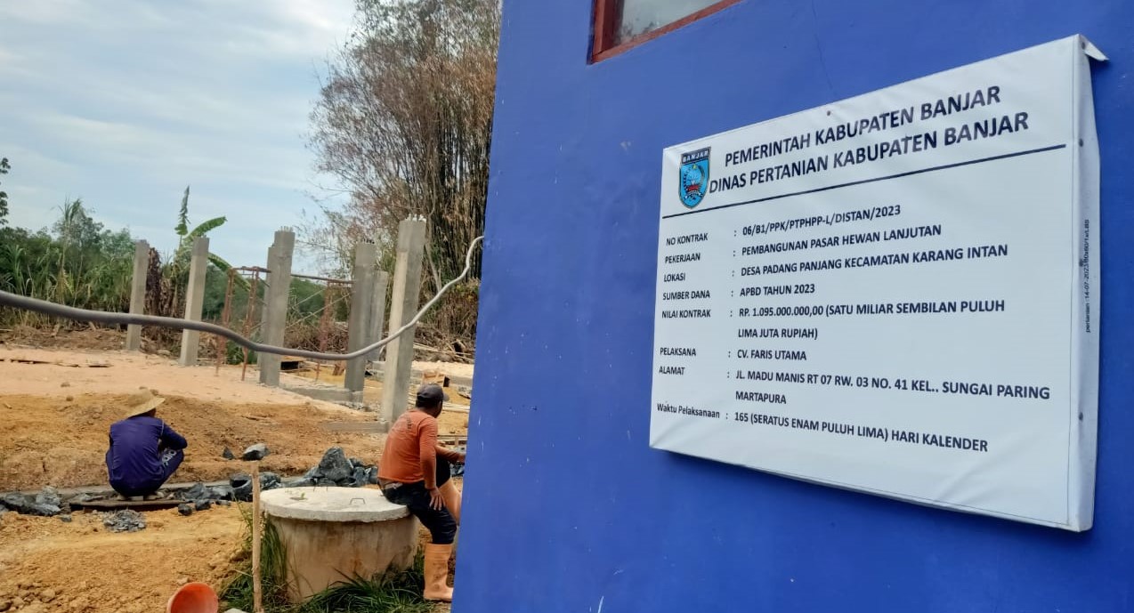 Link, Martapura – Pembangunan Pasar Hewan di Desa Padang Panjang Kecamatan Karang Intan Kabupaten Banjar Tahap 2, diklaim hampir selesai.