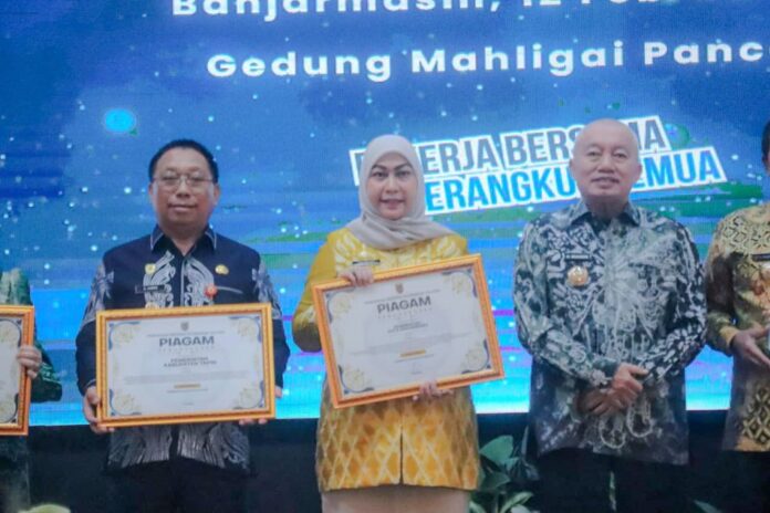 Penghargaan tersebut diterima langsung oleh Wali Kota Lisa saat menghadiri Rapat Koordinasi (Rakor) Percepatan Pembangunan Sumber Dana APBN Provinsi Kalimantan Selatan, yang digelar di Gedung Mahligai Pancasila, Banjarmasin, Kamis (12/02/2026).