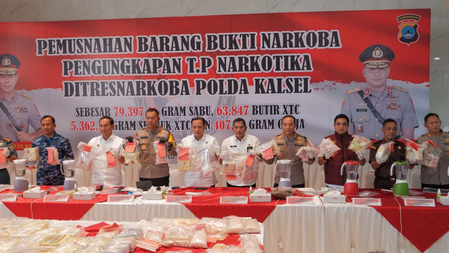 Pemusnahan itu dipimpin langsung Kapolda Kalsel Irjen Winarto dan dihadiri Kepala BNNP Kalsel, Brigjen Pol. Wisnu Andayana; Direktur Resnarkoba Polda Kalsel, Kombes Pol Kelana Jaya; Kabinda Kalsel, Brigjen Pol. Nurullah; Irwasda Kalsel, Kombes Pol. Turman Sormin Siregar; Komandan Kodim 1006 Banjar, Letkol Kav Zulkifer dan Danlanud Sjamsuddin Noor, Kolonel Vincent, serta perwakilan dari Kasi Narkotika Kejati Kalsel dan Kanwil Bea Cukai Kalbagsel.