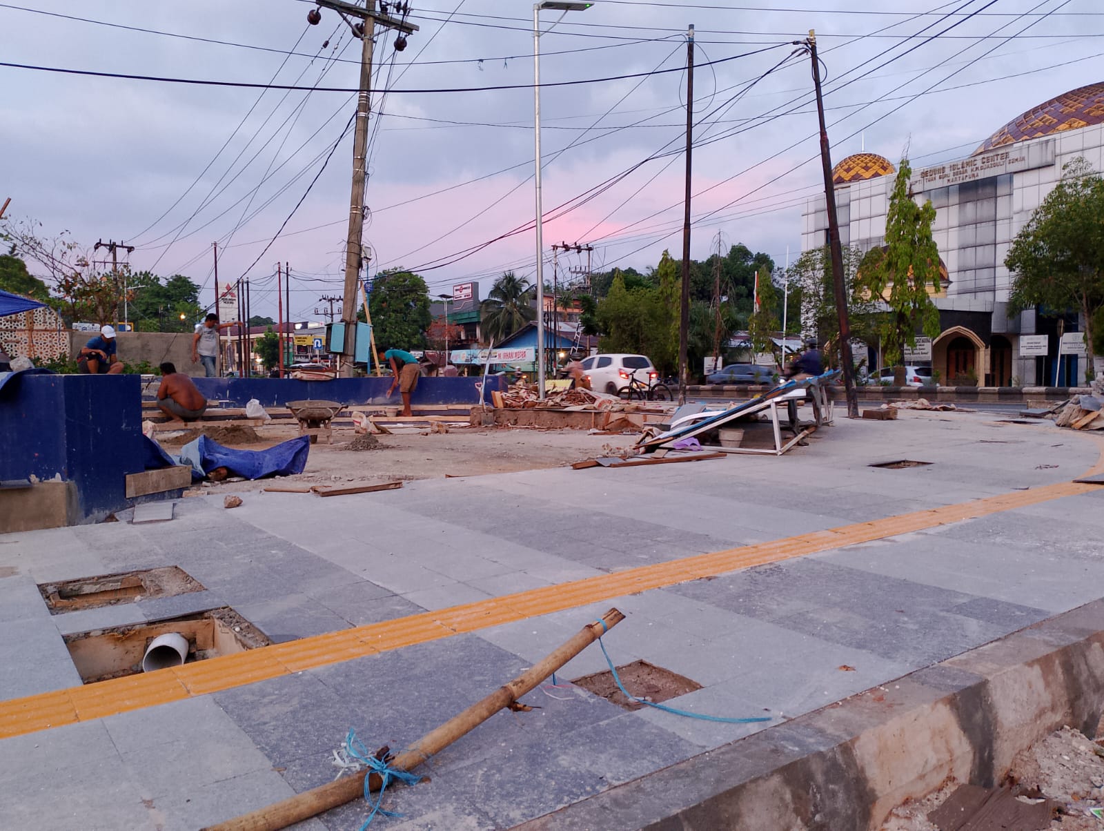 Link, Martapura – Pekerjaan penataan pedestrian di koridor 4, atau tugu selamat datang di Martapura masih berlangsung. Terlihat para pekerja, masih sibuk mengerjakan proyek tersebut.