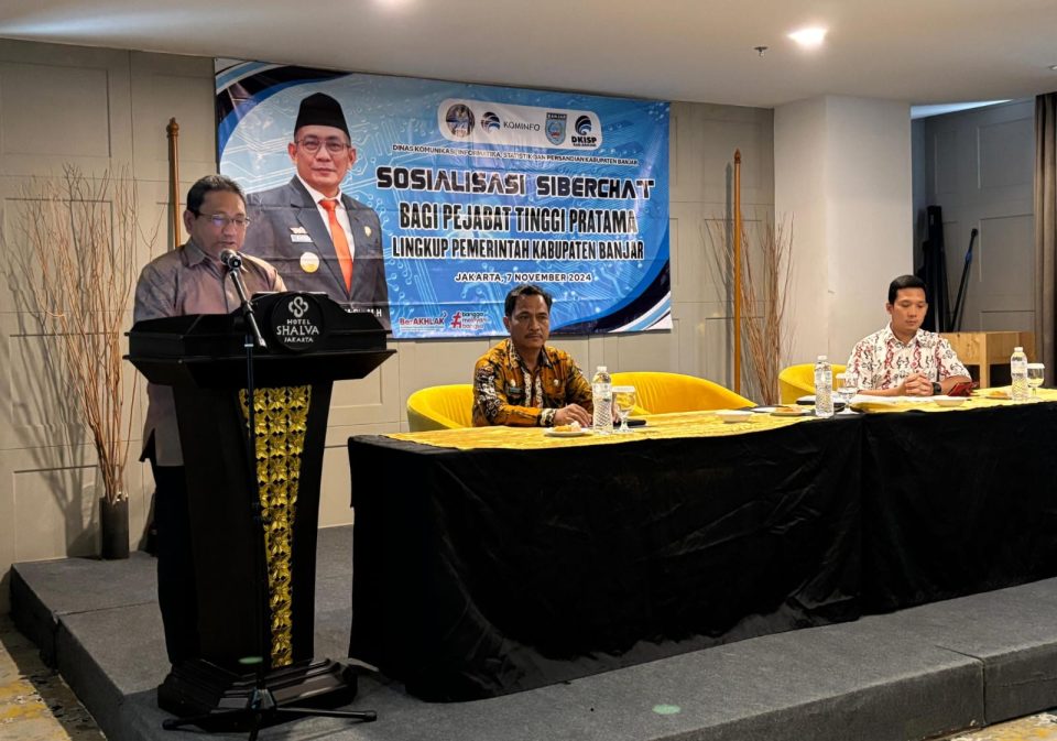 Link, Jakarta- Sekda Banjar HM Hilman membuka Sosialisasi Aplikasi Siberchat untuk Pejabat Tinggi Pratama Lingkup Pemerintah Kabupaten Banjar, di Hotel Shalva Jakarta Pusat, Kamis (7/11/2024).