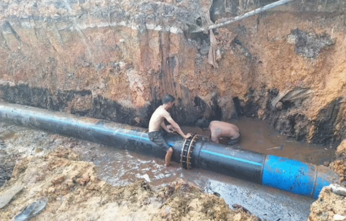 Link, Banjarbaru – Perbaikan kebocoran pipa JDU berdiameter 500 mm yang berlokasi di Jalan Gubernur Syarkawi, tepatnya depan SPBU Kota Citra Graha. Menyebabkan gangguan suplai air bersih kepada para pelanggan, pada Rabu, 24 September 2025.