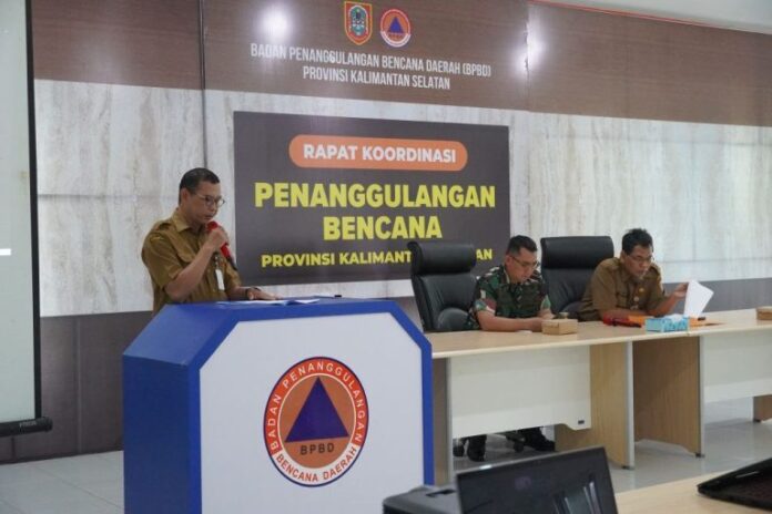 Link, Banjarbaru – Badan Penanggulangan Bencana Daerah (BPBD) Provinsi Kalimantan Selatan melaksanakan kegiatan Rapat Penyusunan Dokumen Rencana Kontinjensi (Renkon) Bencana Air Pasang Tinggi dan Gelombang Pasang (Rob) tahun 2025. Kegiatan ini berlangsung di Aula Kantor BPBD Kalsel, Banjarbaru, dan dibuka secara resmi oleh Plt Kepala BPBD Provinsi Kalimantan Selatan, Gusti Yanuar Noor Rifai, yang diwakili oleh Sekretaris BPBD Kalsel, Iswantoro.