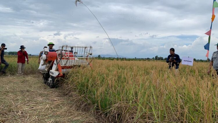 “Alhamdulillah, lahan padi yang ada ini bisa dipanen, jadi mudah-mudahan suplai untuk masyarakat ini bisa terpenuhi,” ujar Aditya.