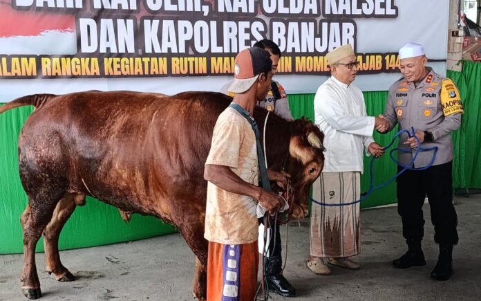 Link, Martapura – Kepolisian Daerah Kalimantan Selatan (Polda Kalsel) menyerahkan bantuan tiga ekor sapi dukung kelancaran kegiatan Momen 5 Rajab 1447 Hijriah atau Haul Syekh Muhammad Zaini bin Abdul Ghani yang masyur dipanggil Abah Guru Sekumpul.