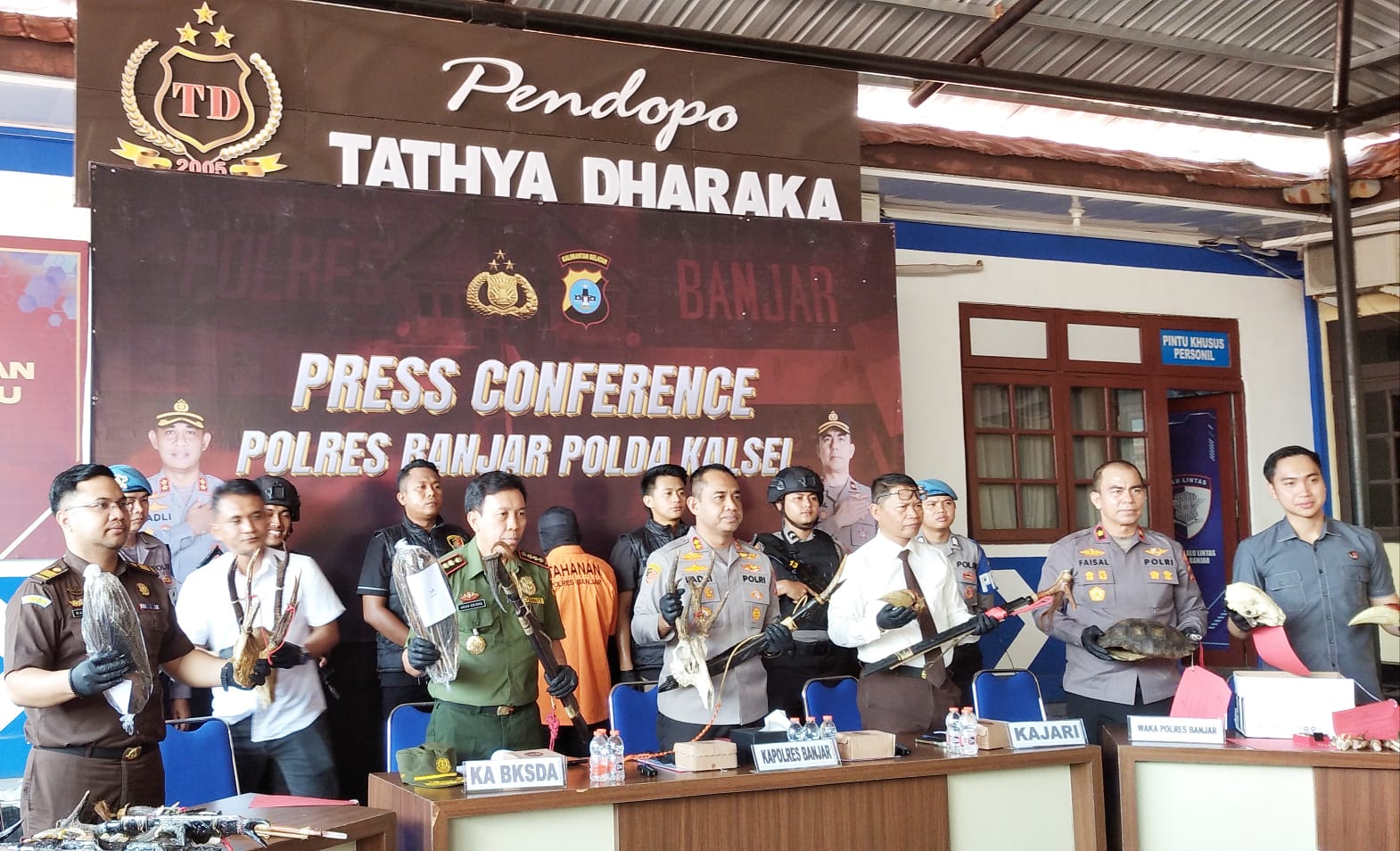 Link, Martapura – Kepolisian Resor (Polres) Banjar bersama Balai Konservasi Sumber Daya Alam (BKSDA) Kalimantan Selatan (Kalsel) berhasil mengungkap kasus perdagangan bagian tubuh satwa liar yang dilindungi di kawasan pertokoan Cahaya Bumi Selamat (CBS) Martapura pada 17 Juni 2025 lalu.
