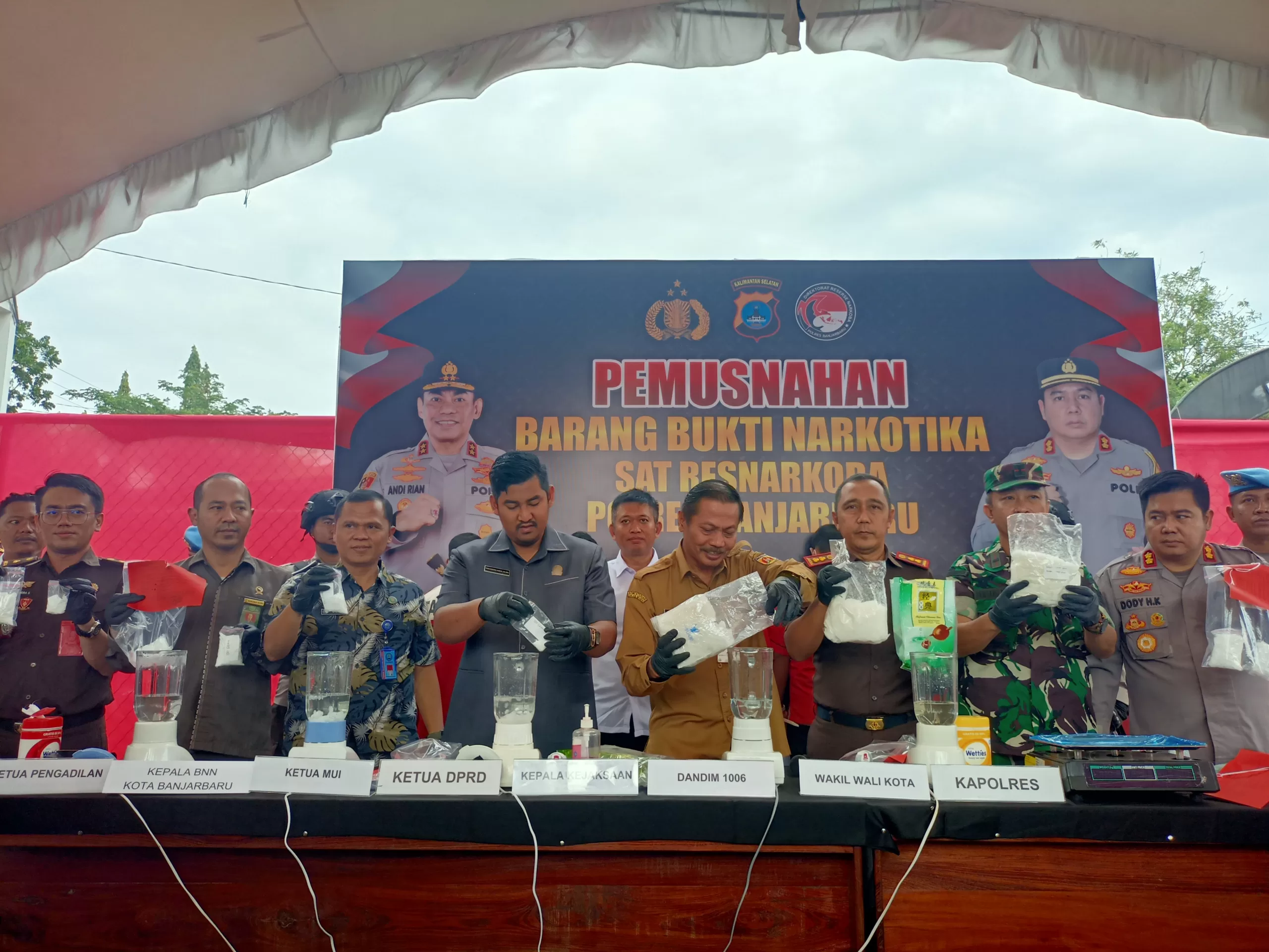 AKBP Dody Harza Kusumah, Kapolres Banjarbaru mengatakan pada pemusnahan ini ada 3,85 kg jenis sabu. Pemusnahan barang bukti ini, dengan cara diblender lalu dibuang ke toilet.