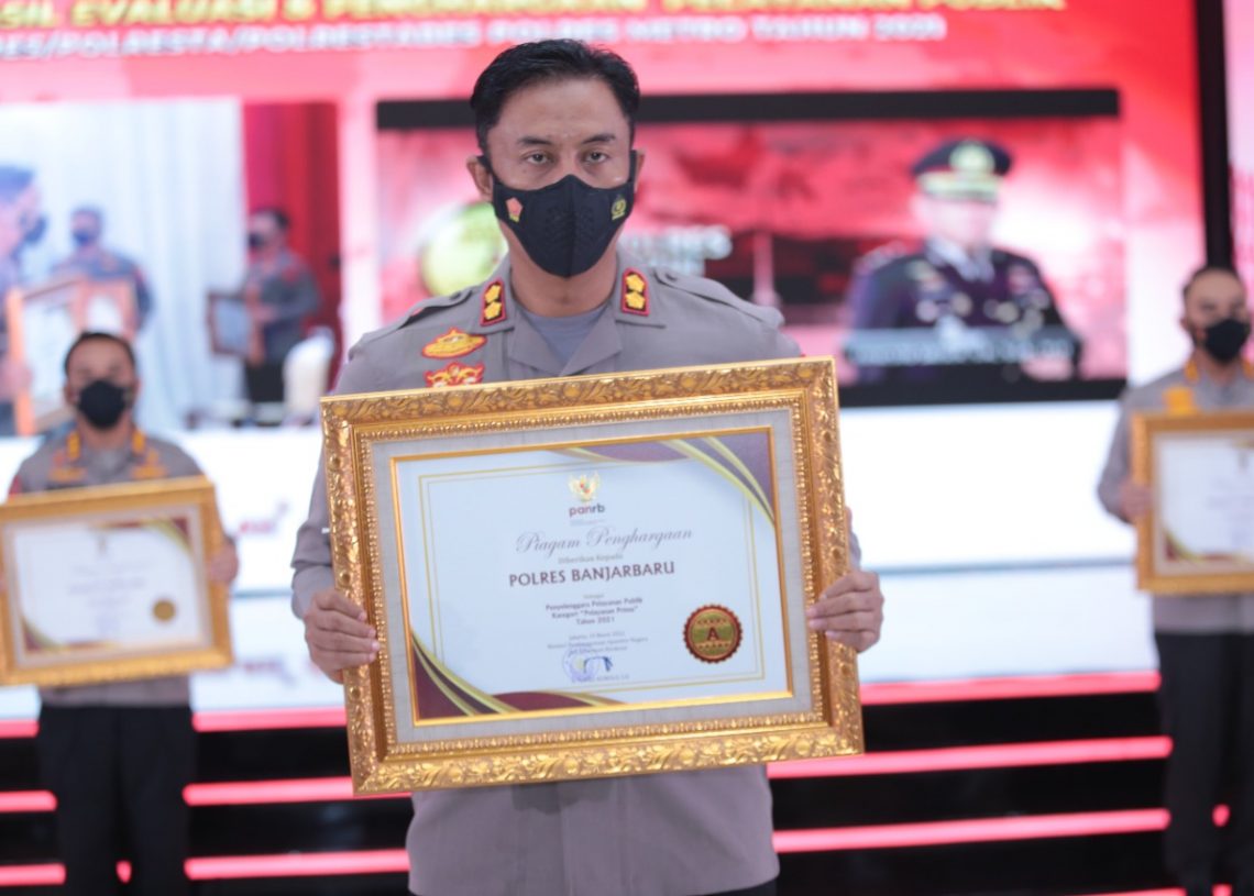 “Alhamdulillah, Polres Banjarbaru meraih penghargaan sebagai penyelenggara pelayanan publik kategori A (pelayanan prima) tahun 2021, dari Kemen PANRB,” tuturnya pada Jum’at (11/3/2022).