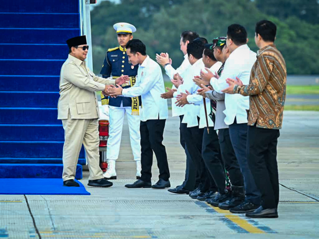 Dikutip dari BPMI Setpres, ketibaan Presiden Prabowo di Indonesia disambut oleh Wakil Presiden Gibran Rakabuming, Menteri Koordinator Bidang Perekonomian Airlangga Hartarto, Menteri Sekretaris Negara Prasetyo Hadi, Menteri ESDM Bahlil Lahadalia, Menteri Pemuda dan Olahraga Erick Thohir, Wakil Menteri Komunikasi dan Digital Angga Raka Prabowo, Kepala BIN Muhammad Herindra, Panglima TNI Jenderal Agus Subiyanto, dan Wakapolri Komjen Dedi Prasetyo.