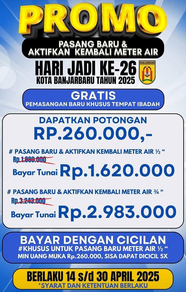 Humas PT Air Minum Intan Banjar, Mahyuni mengatakan bahwa program ini berlaku mulai tanggal 14 hingga 30 April 2025 dan ditujukan untuk memberikan kemudahan serta keringanan biaya bagi masyarakat yang ingin menikmati layanan air bersih.