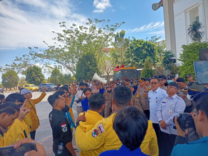 Link, Banjarbaru – Kantor Gubernur Kalimantan Selatan (Kalsel) kedatangan puluhan Mahasiswa yang tergabung dari beberapa Universitas Kalimantan Selatan, untuk menyerukan aspirasi masyarakat.