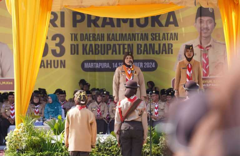 Link, Martapura – Puncak Peringatan Hari Pramuka ke 63 Tingkat Daerah Provinsi Kalimantan Selatan, yang digelar di Alun-alun Ratu Zalecha, Martapura dipimpin Ketua Kwartir Daerah (Kwarda) Gerakan Pramuka Provinsi Kalimantan Selatan Hj. Raudatul Jannah atau Acil Odah, Sabtu (14/9) pagi.
