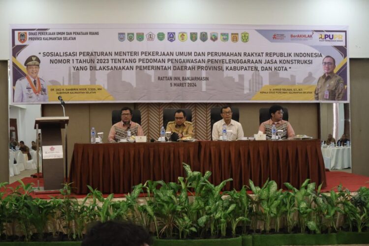 Link, Banjarmasin – Dinas Pekerjaan Umum dan Penataan Ruang (PUPR) Provinsi Kalsel melaksanakan Sosialisasi Peraturan Menteri PUPR RI Nomor 1 Tahun 2023 tentang Pedoman Pengawasan Penyelenggaraan Jasa Konstruksi yang dilaksanakan pemerintah daerah provinsi, kabupaten dan kota, Banjarmasin, Selasa (5/3/2024).