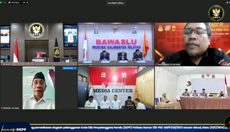 Link, Martapura – Setelah menggelar sidang kode etik Rabu (10/1/2024) lalu, kini Majelis Dewan Kehormatan Penyelenggaraan Pemilu (DKPP) RI kembali menggelar sidang etik pada Rabu 28 Februari 2024. Kali ini materinya pembacaan putusan atas aduan Ali Fahmi terhadap lima komisioner Komisi Pemilihan Umum (KPU) Banjar.