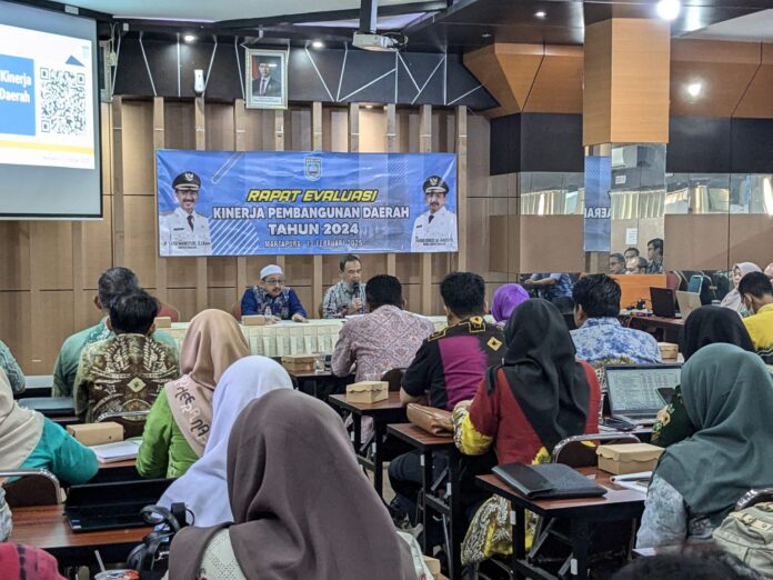Link, Martapura- Pemerintah Kabupaten Banjar melalui Badan Perencanaan Pembangunan Daerah, Penelitian dan Pengembangan (Bappedalitbang) menggelar Rapat Evaluasi Kinerja Pembangunan Daerah Tahun 2024, di Aula Baiman Martapura, Kamis (13/2/2025) pagi.