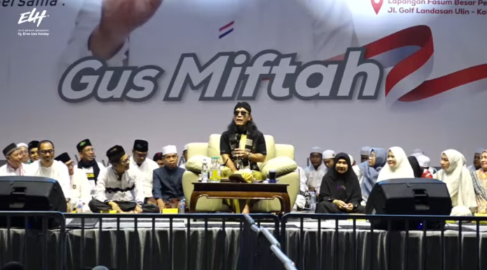 Tampil dengan jok-joknya, Gus Miftah begitu menghipnotis ribuan Jemaah yang sesekali tertawa serentak.