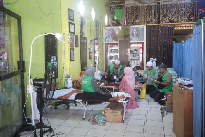 “20 nakes kita terjunkan, mulai dari dokter, perawat, bidan, fisioterapi hingga driver. Jadi untuk posko kita ini bersifat rujukan yang berarti pelayanannya adalah pemeriksaan awal. Mulai dari penyediaan rawat inap sementara, pengobatan dengan keluhan-keluhan yang masih bisa ditangani disini,” ucapnya.