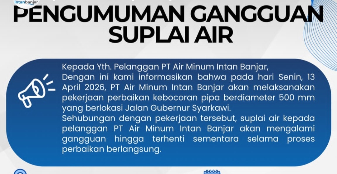 Atas gangguan pelayanan ini, PT Air Minum Intan Banjar menyampaikan permohonan maaf dan berharap masyarakat dapat memahami upaya perbaikan yang dilakukan demi peningkatan kualitas layanan air bersih ke depan. (why)