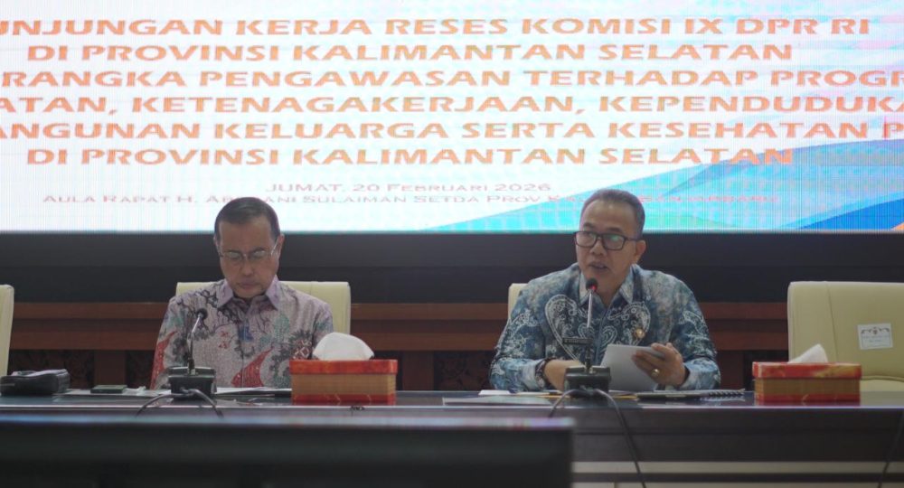 link, Banjarbaru – Gubernur Kalimantan Selatan, H. Muhidin melalui Sekretaris Daerah Provinsi Kalsel, Muhammad Syarifuddin menerima kunjungan kerja reses Komisi IX DPR RI di Provinsi Kalimantan Selatan, yang berlangsung di Aula Rapat H. Abrani Sulaiman, Kantor Gubernur Kalsel di Banjarbaru, Jumat (20/2/2026).