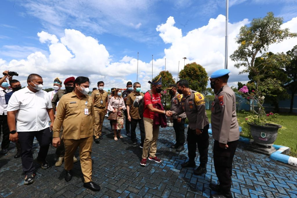 Link, Banjarbaru – Gubernur Kalsel H. Sahbirin Noor melalui Sekretaris Daerah Roy Rizali Anwar menyambut kedatangan Menteri Pariwisata dan Ekonomi Krearif (Menparekraf) Sandiaga Uno di VIP Room Bandara Syamsuddin Noor Banjarbaru pada Selasa (12/7).