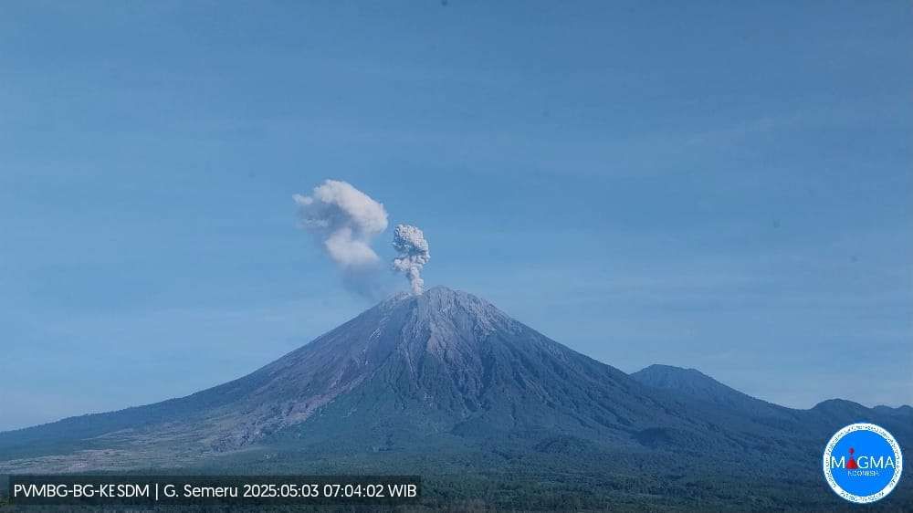 Linkalimantan.com – Untuk kesekian kalinya di tahun 2025 ini Gunung Semeru di perbatasan Kabupaten Malang dan Kabupaten Lumajang kembali mengalami erupsi pada pukul 07.02 WIB, Sabtu (3/5/2025). Tinggi kolom letusan kurang lebih 700 meter di atas puncak gunung atau 4376 meter di atas permukaan laut.