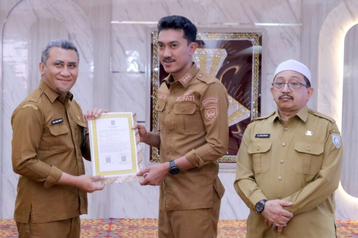 Link, Martapura – Bupati Banjar H Saidi Mansyur, secara simbolis menyerahkan Perjanjian Kinerja Kepala Daerah Tahun 2024.