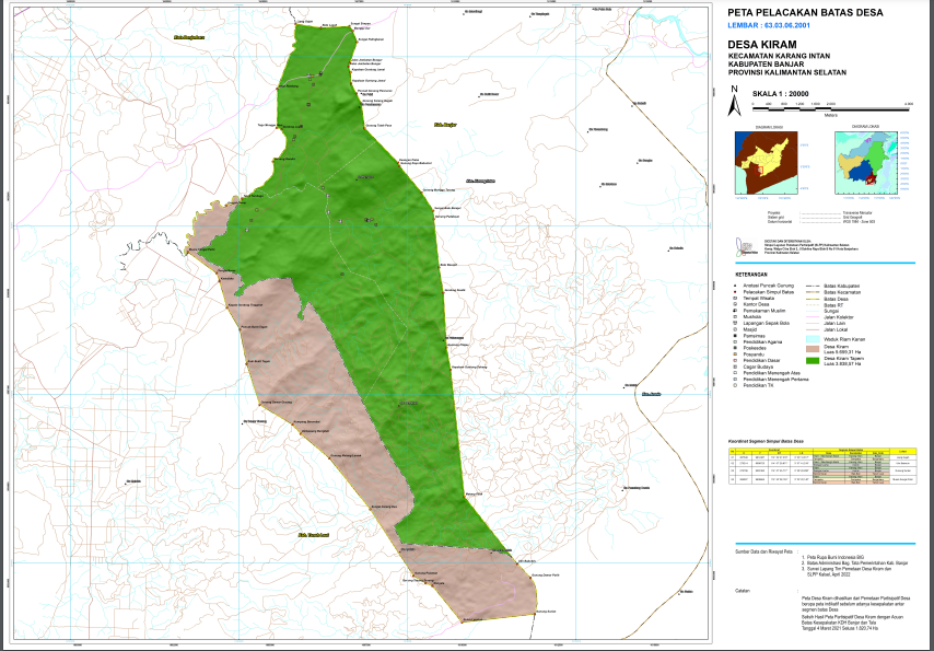 Batas wilayah Desa Kiram Kecamatan Karang Intan, Kabupaten Banjar – Tanah Laut tertuang sangat jelas pada segmen Batas Sebelah Timur Kabupaten Banjar dengan Kabupaten Tanah. Didalamnya terdapat 47 titik koordinat yang telah disepakati dalam dokumen. (spy)