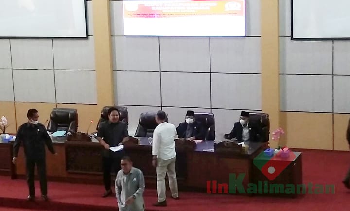Link, Martpura – Entah apa yang tengah diperebutkan anggota DPRD Kabupaten Banjar dalam rapat paripurna yang konon terhormat, yang pastinya gelaran rapat paripurna dengan tiga agenda bahasan kembali memanas di warnai interupsi, dan hampir berujung baku hantam.