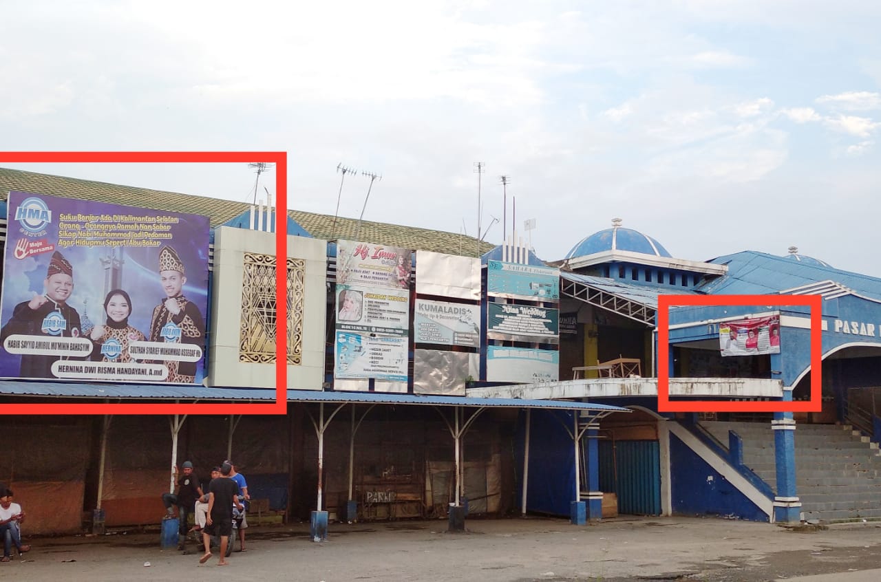 Link, Martapura – Hingar bingar pemandangan penyebaran alat peraga kampanye (APK) belakangan ini tak hanya tersaji di tintik jalur padat transportasi. Fasilitas umum seperti pasar pun tak lepas dari pemandangan yang sama. Seperti keberadaan banner spanduk calon legislative (caleg) dari Partai Nasdem dan PDIP terpasang di dinding Pasar Batuah Martapura, Labupaten Banjar, Kalsel.