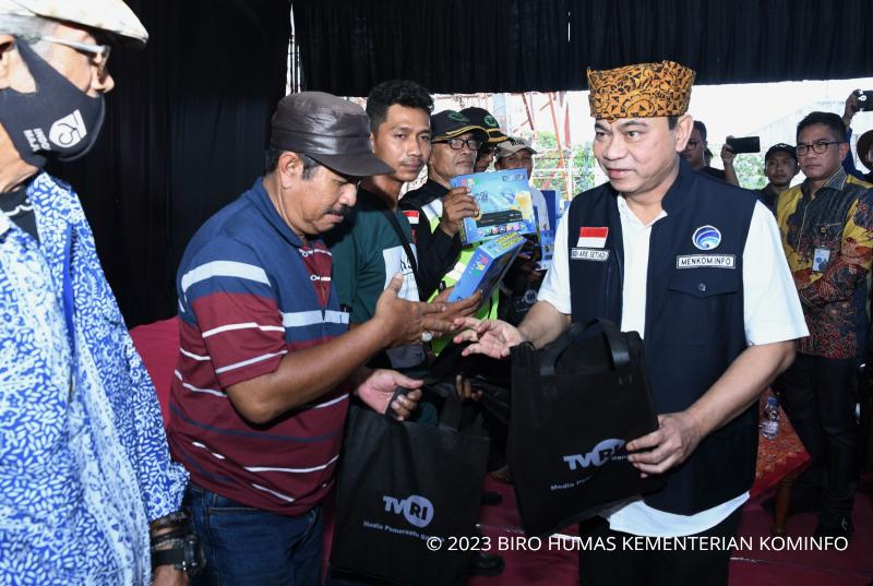 Dalam peninjauan itu, Menkoominfo Budi Arie Setiadi menyerahkan bantuan Set Top Box kepada masyarakat secara simbolis Penyerahan bantuan juga disaksikan oleh Dirjen Penyelenggaraan Pos dan Informatika Kementerian Kominfo Wayan Tony Suprianto. (why)