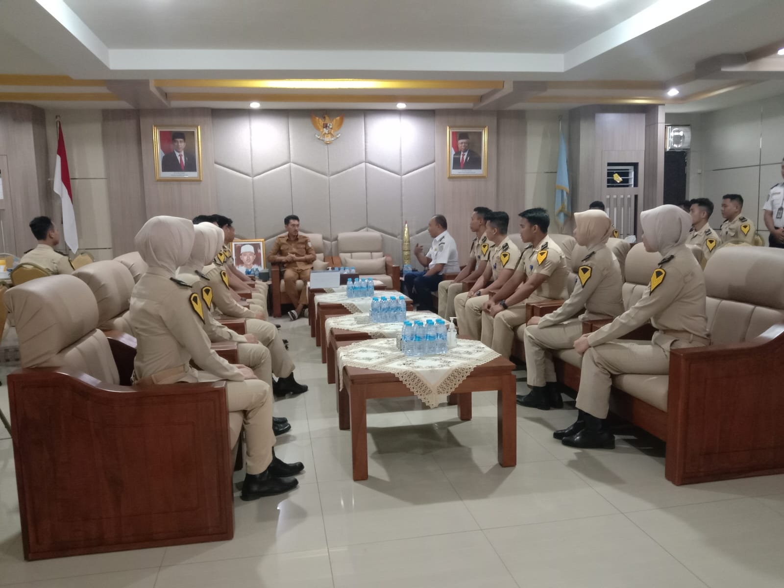 Link, Martapura – Setelah menjalani magang beberapa bulan di Dinas Perhubungan (Dishub) Kabupaten Banjar, 18 taruna taruni Sekolah Tinggi Transportasi Darat (STTD) lakukan audiensi dengan Bupati Banjar, di Mahligai Sultan Adam lantai 1 Martapura, Selasa (02/01/2024) siang.