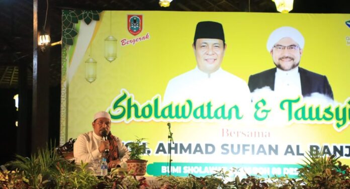 Kali ini, Sholawatan dan Tausiah yang rutin digelar oleh Gubernur Kalsel, H. Sahbirin Noor atau Paman Birin setiap bulan purnama ini menghadirkan TGH. Ahmad Sufian Al Banjari atau Guru Sufian sebagai penceramah.