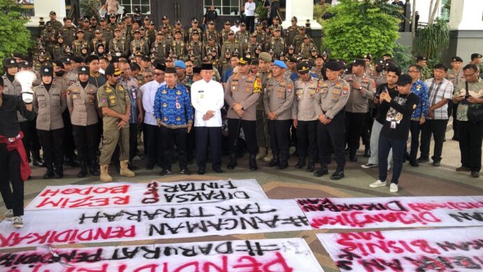 Link, Banjarbaru – Gubernur Kalimantan Selatan (Kalsel), H. Muhidin, secara langsung menemui massa aksi yang tergabung dalam Aliansi Badan Eksekutif Mahasiswa (BEM) se-Kalimantan Selatan di halaman Kantor Gubernur, Jumat (2/5/2025).