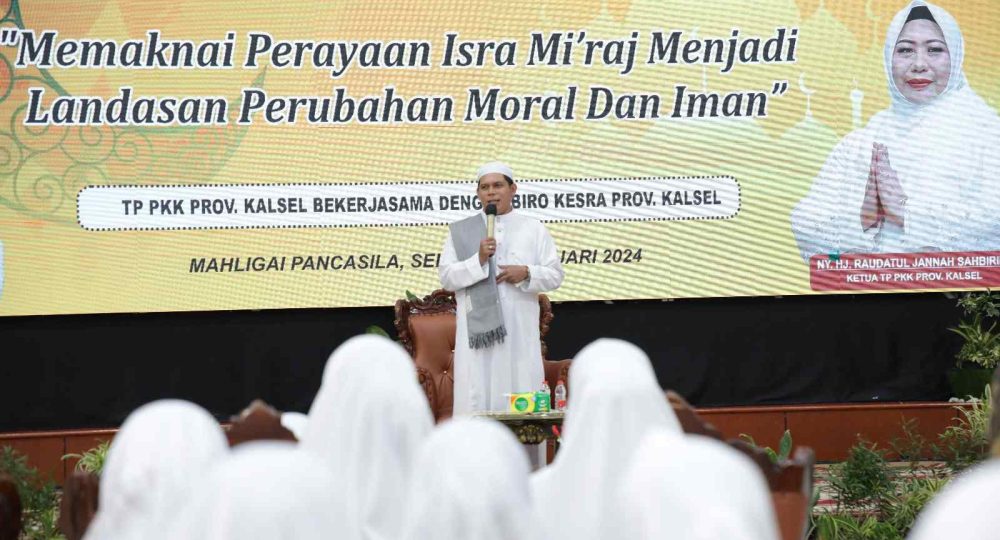 Link, Banjarmasin – Peringatan Isra Mikraj Nabi Besar Muhammad SAW 1445 Hijriah menjadi agenda rutin TP PKK Provinsi Kalimantan Selatan, melalui Pokja 1 yang bekerjasama dengan Biro Kesejahteraan Rakyat Setdaprov Kalsel.
